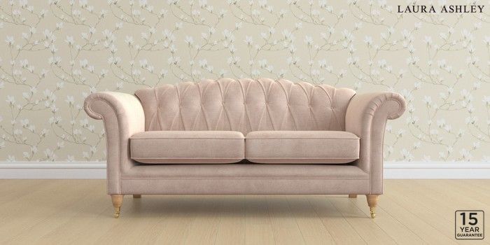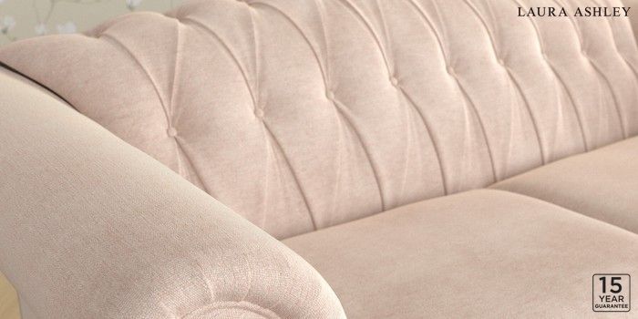6.12.13 Buy Gloucester Button Back by Laura Ashley 3 Seater Small Sofa Orla Chalk Pink Low Brass Castor - Light Oak from the Next UK online shop Click here to use our accessible website