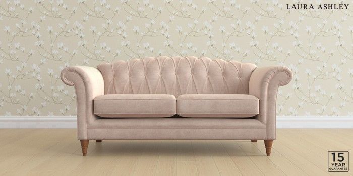 6.12.13 Buy Gloucester Button Back by Laura Ashley 3 Seater Small Sofa Orla Chalk Pink Low Turned - Teak from the Next UK online shop Click here to use our accessible website