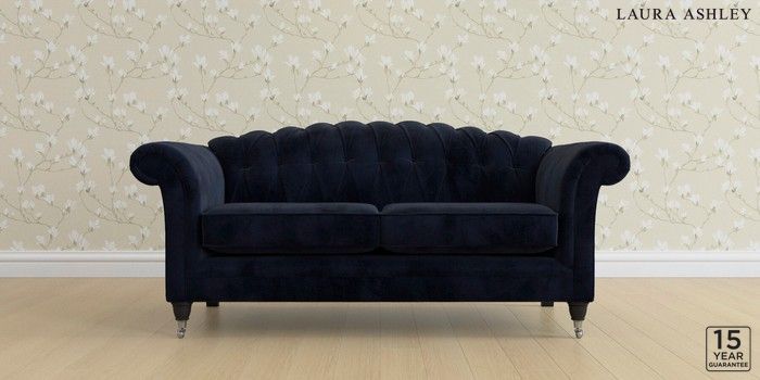 6.12.1 Buy Gloucester Button Back by Laura Ashley 3 Seater Small Sofa Orla Midnight Navy Low Chrome Castor - Black from the Next UK online shop Click here to use our accessible website