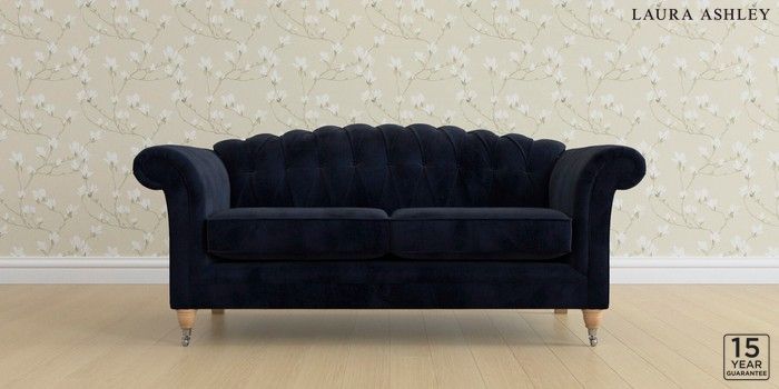 6.12.13 Buy Gloucester Button Back by Laura Ashley 3 Seater Small Sofa Orla Midnight Navy Low Chrome Castor - Light Oak from the Next UK online shop Click here to use our accessible website