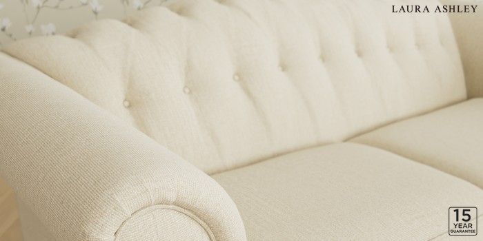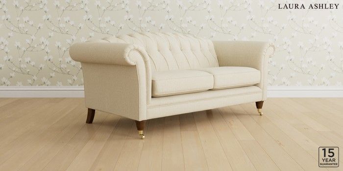 6.12.1 Buy Gloucester Button Back by Laura Ashley 3 Seater Small Sofa Orla Oyster Natural Low Brass Castor - Teak from the Next UK online shop Click here to use our accessible website