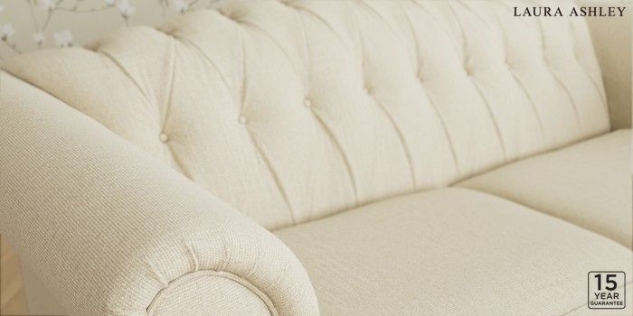 6.12.1 Buy Gloucester Button Back by Laura Ashley 3 Seater Small Sofa Orla Oyster Natural Low Chrome Castor - Teak from the Next UK online shop Click here to use our accessible website