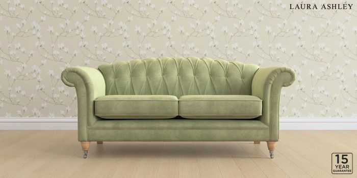 6.12.13 Buy Gloucester Button Back by Laura Ashley 3 Seater Small Sofa Orla Pale Hedgerow Green Low Chrome Castor - Light Oak from the Next UK online shop Click here to use our accessible website
