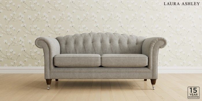 6.12.13 Buy Gloucester Button Back by Laura Ashley 3 Seater Small Sofa Orla Pale Steel Grey Low Chrome Castor - Chestnut from the Next UK online shop Click here to use our accessible website