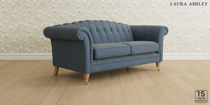 6.12.1 Buy Gloucester Button Back by Laura Ashley 3 Seater Small Sofa Orla Seaspray Blue Low Brass Castor - Light Oak from the Next UK online shop Click here to use our accessible website