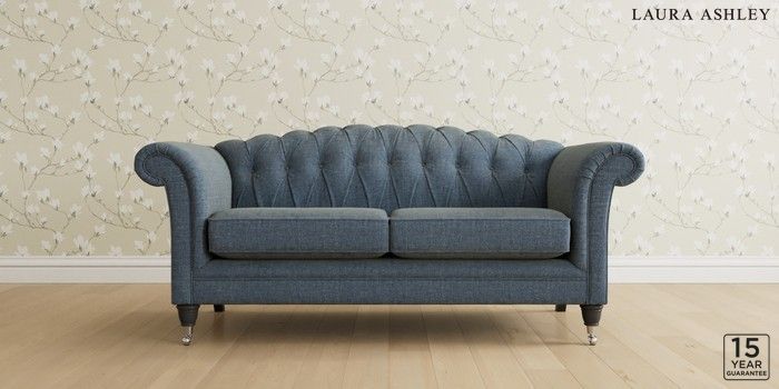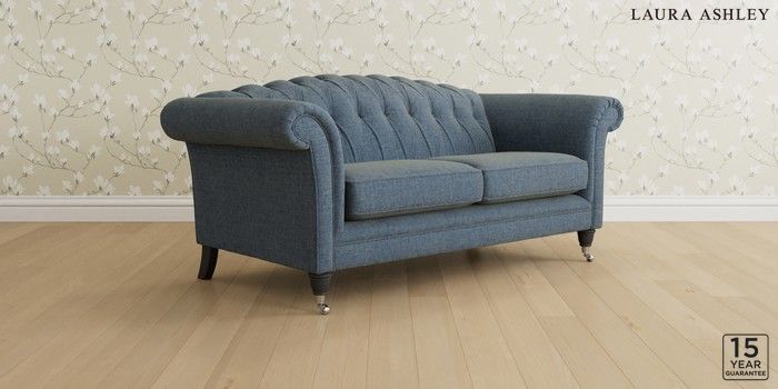 6.12.1 Buy Gloucester Button Back by Laura Ashley 3 Seater Small Sofa Orla Seaspray Blue Low Chrome Castor - Black from the Next UK online shop Click here to use our accessible website