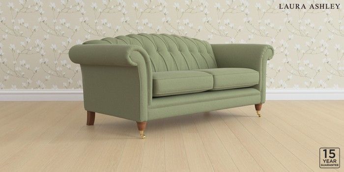 6.12.1 Buy Gloucester Button Back by Laura Ashley 3 Seater Small Sofa Peyton Hedgerow Green Low Brass Castor - Teak from the Next UK online shop Click here to use our accessible website