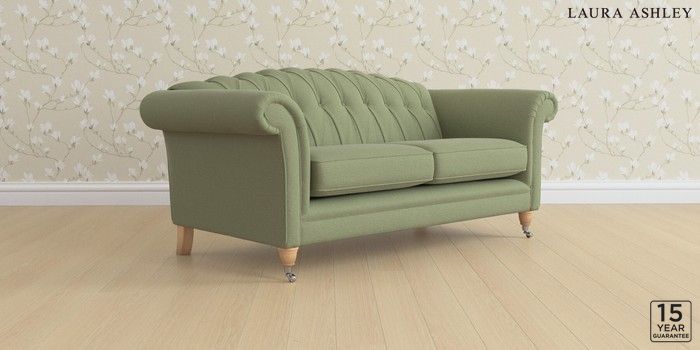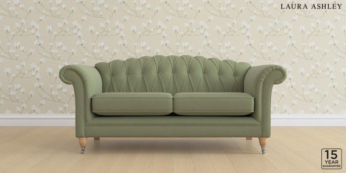6.12.1 Buy Gloucester Button Back by Laura Ashley 3 Seater Small Sofa Peyton Hedgerow Green Low Chrome Castor - Light Oak from the Next UK online shop Click here to use our accessible website