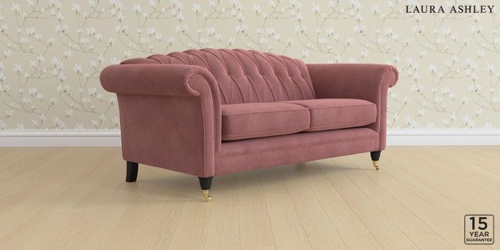 6.12.13 Buy Gloucester Button Back by Laura Ashley 3 Seater Small Sofa Peyton Plum Purple Low Brass Castor - Black from the Next UK online shop Click here to use our accessible website