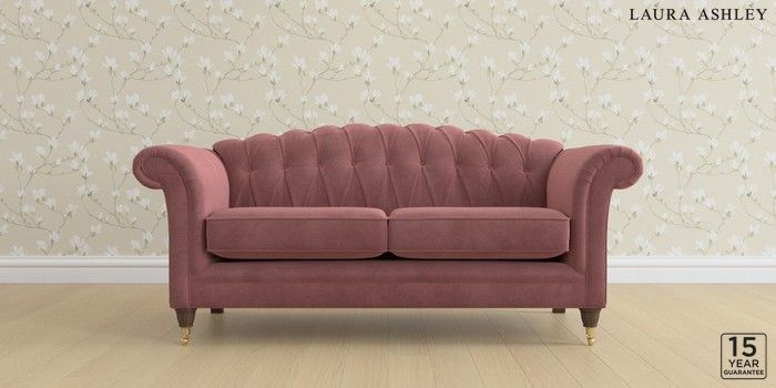 6.12.13 Buy Gloucester Button Back by Laura Ashley 3 Seater Small Sofa Peyton Plum Purple Low Brass Castor - Chestnut from the Next UK online shop Click here to use our accessible website