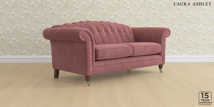 6.12.13 Buy Gloucester Button Back by Laura Ashley 3 Seater Small Sofa Peyton Plum Purple Low Chrome Castor - Chestnut from the Next UK online shop Click here to use our accessible website