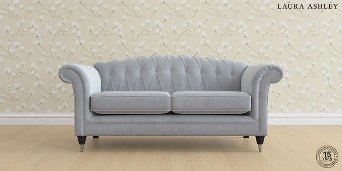 6.12.1 Buy Gloucester Button Back by Laura Ashley 3 Seater Small Sofa Peyton Powder Blue Low Chrome Castor - Black from the Next UK online shop Click here to use our accessible website