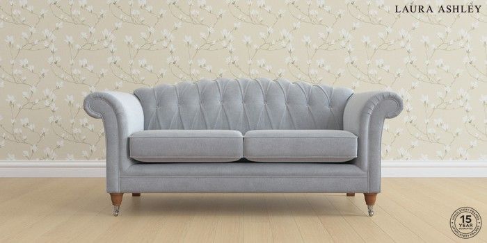 6.12.1 Buy Gloucester Button Back by Laura Ashley 3 Seater Small Sofa Peyton Powder Blue Low Chrome Castor - Teak from the Next UK online shop Click here to use our accessible website