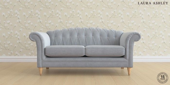6.12.1 Buy Gloucester Button Back by Laura Ashley 3 Seater Small Sofa Peyton Powder Blue Low Turned - Light Oak from the Next UK online shop Click here to use our accessible website