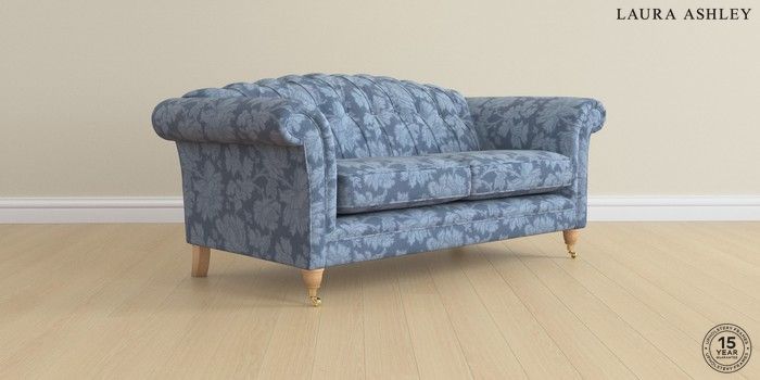 7.2.6 Buy Gloucester Button Back by Laura Ashley 3 Seater Small Sofa Tamara Dusky Seaspray Blue Low Brass Castor - Light Oak from the Next UK online shop Click here to use our accessible website