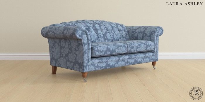 7.2.6 Buy Gloucester Button Back by Laura Ashley 3 Seater Small Sofa Tamara Dusky Seaspray Blue Low Chrome Castor - Teak from the Next UK online shop Click here to use our accessible website
