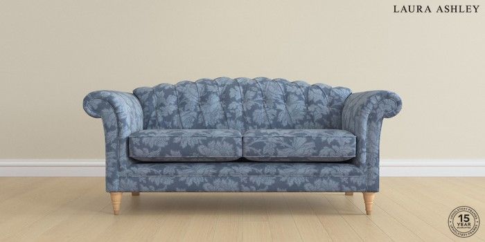 6.12.1 Buy Gloucester Button Back by Laura Ashley 3 Seater Small Sofa Tamara Dusky Seaspray Blue Low Turned - Light Oak from the Next UK online shop Click here to use our accessible website