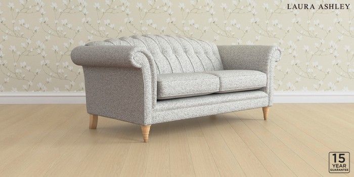 6.12.13 Buy Gloucester Button Back by Laura Ashley 3 Seater Small Sofa Tichwell Steel Grey Low Turned - Light Oak from the Next UK online shop Click here to use our accessible website