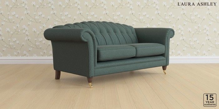 6.12.13 Buy Gloucester Button Back by Laura Ashley 3 Seater Small Sofa Wooton Forest Green Low Brass Castor - Chestnut from the Next UK online shop Click here to use our accessible website
