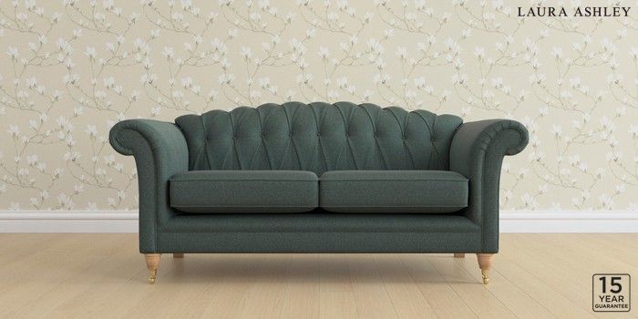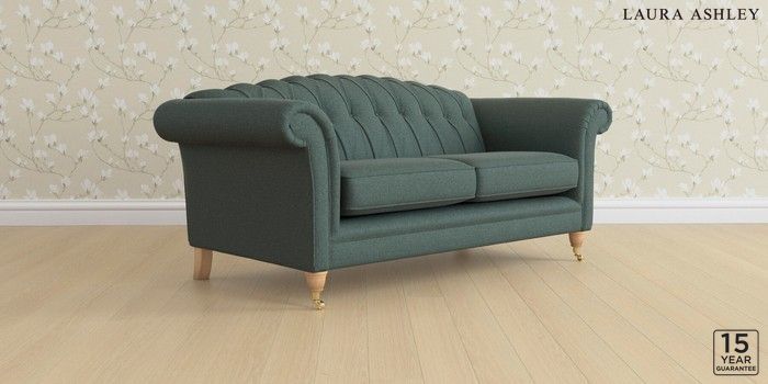 6.12.13 Buy Gloucester Button Back by Laura Ashley 3 Seater Small Sofa Wooton Forest Green Low Brass Castor - Light Oak from the Next UK online shop Click here to use our accessible website
