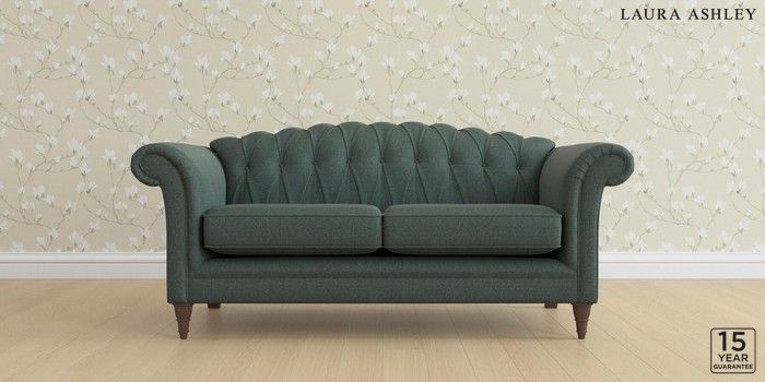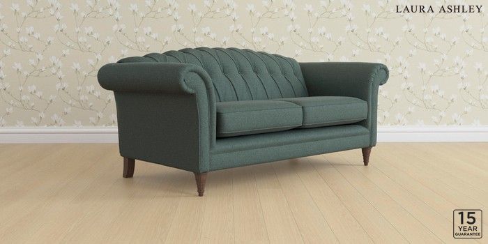 6.12.13 Buy Gloucester Button Back by Laura Ashley 3 Seater Small Sofa Wooton Forest Green Low Turned - Chestnut from the Next UK online shop Click here to use our accessible website