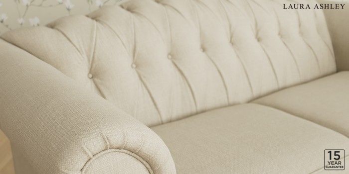 6.12.13 Buy Gloucester Button Back by Laura Ashley 3 Seater Small Sofa Wooton Natural Low Brass Castor - Chestnut from the Next UK online shop Click here to use our accessible website