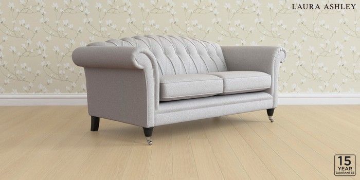 6.12.13 Buy Gloucester Button Back by Laura Ashley 3 Seater Small Sofa Wooton Pale Steel Grey Low Chrome Castor - Black from the Next UK online shop Click here to use our accessible website