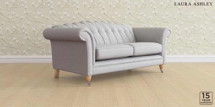 6.12.13 Buy Gloucester Button Back by Laura Ashley 3 Seater Small Sofa Wooton Pale Steel Grey Low Chrome Castor - Light Oak from the Next UK online shop Click here to use our accessible website