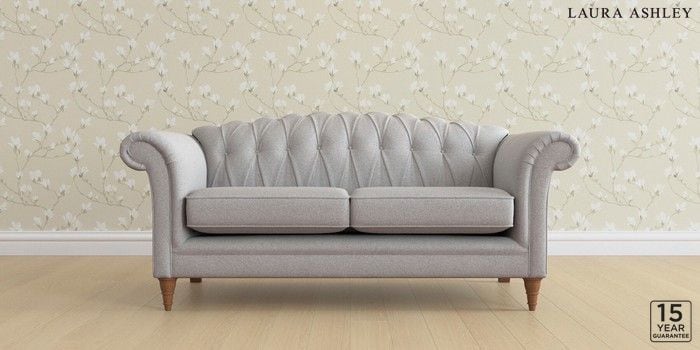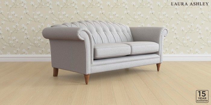 6.12.13 Buy Gloucester Button Back by Laura Ashley 3 Seater Small Sofa Wooton Pale Steel Grey Low Turned - Teak from the Next UK online shop Click here to use our accessible website