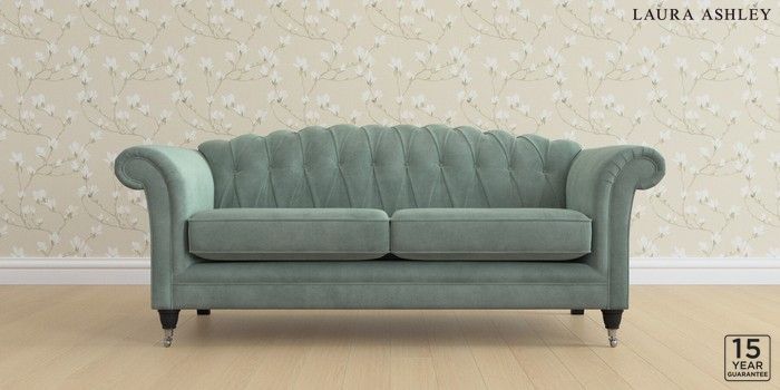 6.12.13 Buy Gloucester Button Back by Laura Ashley 3 Seater Sofa Ailsworth Fern Green Low Chrome Castor - Black from the Next UK online shop Click here to use our accessible website