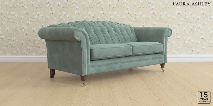 6.12.1 Buy Gloucester Button Back by Laura Ashley 3 Seater Sofa Ailsworth Fern Green Low Chrome Castor - Chestnut from the Next UK online shop Click here to use our accessible website