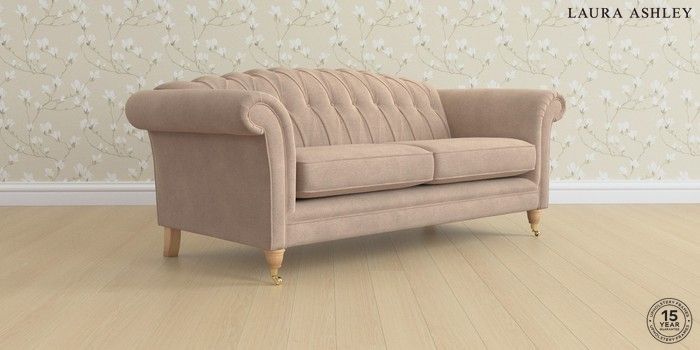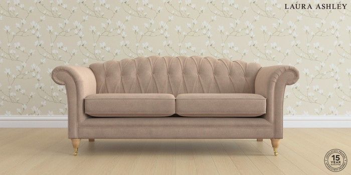 6.12.1 Buy Gloucester Button Back by Laura Ashley 3 Seater Sofa Ailsworth Mink Natural Low Brass Castor - Light Oak from the Next UK online shop Click here to use our accessible website