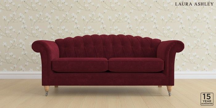 7.0.3 Buy Gloucester Button Back by Laura Ashley 3 Seater Sofa Alwyn Velvet Burgundy Red Low Chrome Castor - Light Oak from the Next UK online shop Click here to use our accessible website