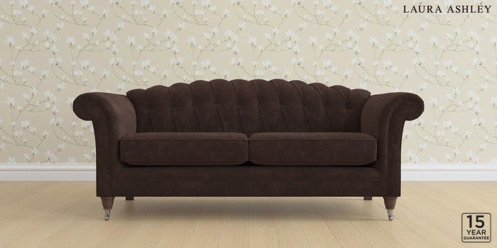 7.0.3 Buy Gloucester Button Back by Laura Ashley 3 Seater Sofa Alwyn Velvet Chocolate Brown Low Chrome Castor - Chestnut from the Next UK online shop Click here to use our accessible website