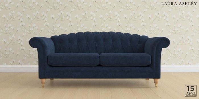 6.12.1 Buy Gloucester Button Back by Laura Ashley 3 Seater Sofa Alwyn Velvet Midnight Navy Low Brass Castor - Light Oak from the Next UK online shop Click here to use our accessible website