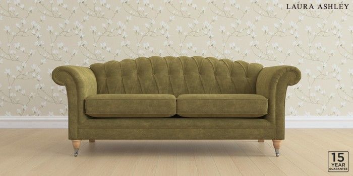 6.12.1 Buy Gloucester Button Back by Laura Ashley 3 Seater Sofa Alwyn Velvet Olive Green Low Chrome Castor - Light Oak from the Next UK online shop Click here to use our accessible website