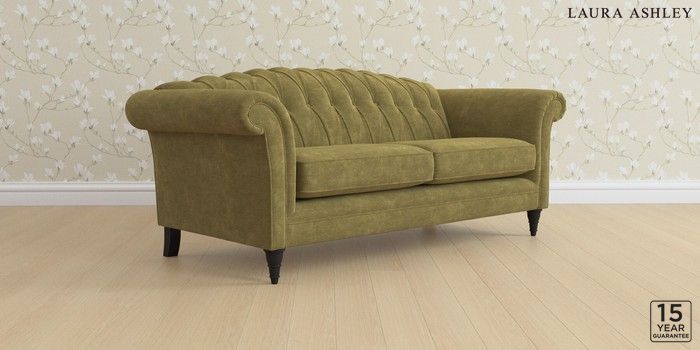 6.12.1 Buy Gloucester Button Back by Laura Ashley 3 Seater Sofa Alwyn Velvet Olive Green Low Turned - Black from the Next UK online shop Click here to use our accessible website