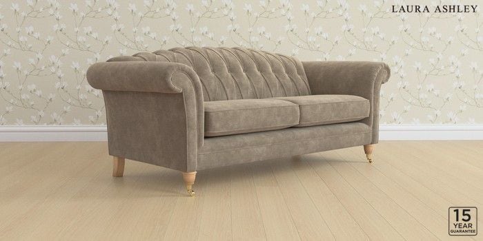 6.12.1 Buy Gloucester Button Back by Laura Ashley 3 Seater Sofa Alwyn Velvet Truffle Natural Low Brass Castor - Light Oak from the Next UK online shop Click here to use our accessible website