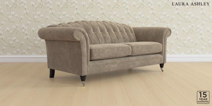 7.0.3 Buy Gloucester Button Back by Laura Ashley 3 Seater Sofa Alwyn Velvet Truffle Natural Low Chrome Castor - Black from the Next UK online shop Click here to use our accessible website