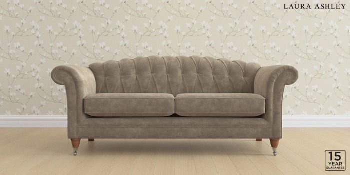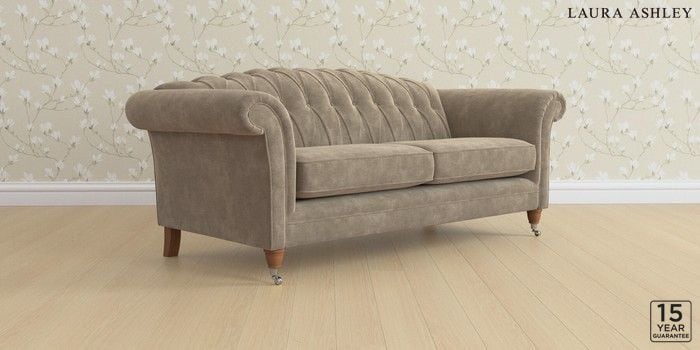 7.0.3 Buy Gloucester Button Back by Laura Ashley 3 Seater Sofa Alwyn Velvet Truffle Natural Low Chrome Castor - Teak from the Next UK online shop Click here to use our accessible website