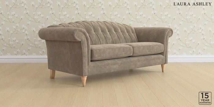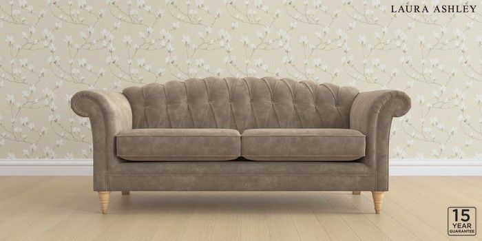 6.12.13 Buy Gloucester Button Back by Laura Ashley 3 Seater Sofa Alwyn Velvet Truffle Natural Low Turned - Light Oak from the Next UK online shop Click here to use our accessible website