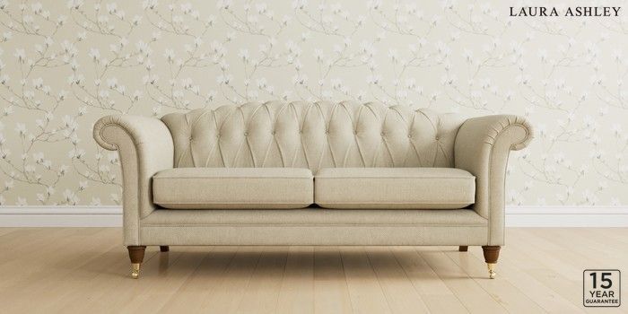 6.12.13 Buy Gloucester Button Back by Laura Ashley 3 Seater Sofa Anneliese Natural Low Brass Castor - Teak from the Next UK online shop Click here to use our accessible website