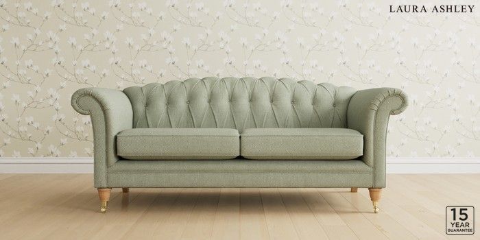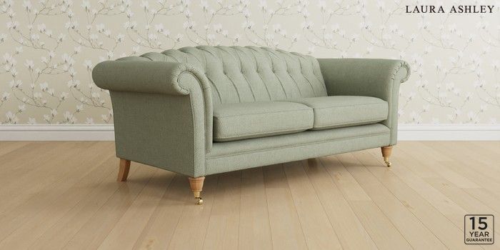 6.12.13 Buy Gloucester Button Back by Laura Ashley 3 Seater Sofa Anneliese Sage Green Low Brass Castor - Light Oak from the Next UK online shop Click here to use our accessible website