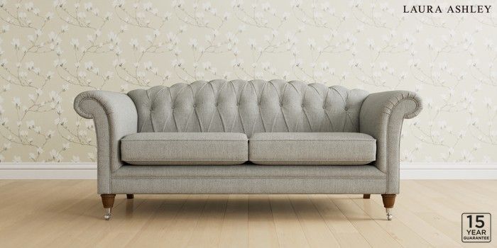 6.12.13 Buy Gloucester Button Back by Laura Ashley 3 Seater Sofa Anneliese Steel Grey Low Chrome Castor - Teak from the Next UK online shop Click here to use our accessible website