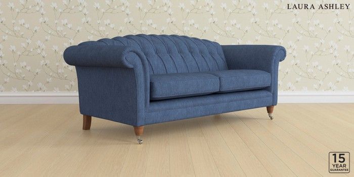 6.12.13 Buy Gloucester Button Back by Laura Ashley 3 Seater Sofa Bainton Midnight Navy Low Chrome Castor - Teak from the Next UK online shop Click here to use our accessible website