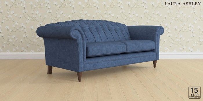 6.12.13 Buy Gloucester Button Back by Laura Ashley 3 Seater Sofa Bainton Midnight Navy Low Turned - Chestnut from the Next UK online shop Click here to use our accessible website