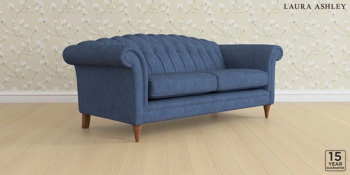 6.12.13 Buy Gloucester Button Back by Laura Ashley 3 Seater Sofa Bainton Midnight Navy Low Turned - Teak from the Next UK online shop Click here to use our accessible website