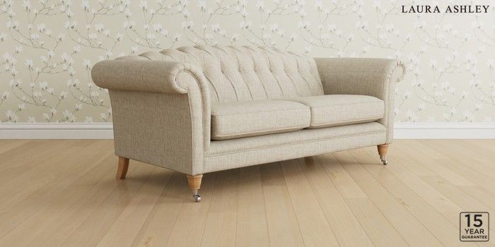 6.12.13 Buy Gloucester Button Back by Laura Ashley 3 Seater Sofa Bainton Natural Low Chrome Castor - Light Oak from the Next UK online shop Click here to use our accessible website