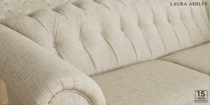 6.12.1 Buy Gloucester Button Back by Laura Ashley 3 Seater Sofa Bainton Natural Low Chrome Castor - Teak from the Next UK online shop Click here to use our accessible website