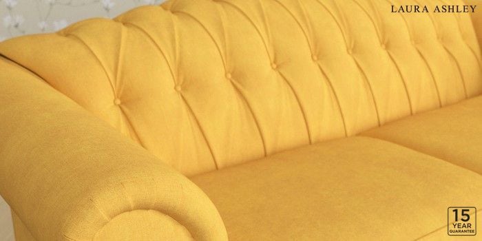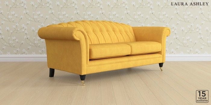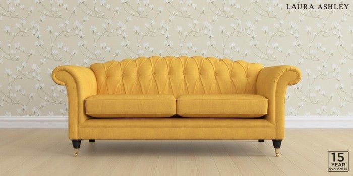 7.0.3 Buy Gloucester Button Back by Laura Ashley 3 Seater Sofa Bainton Ochre Yellow Low Brass Castor - Black from the Next UK online shop Click here to use our accessible website